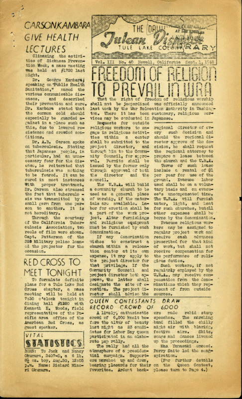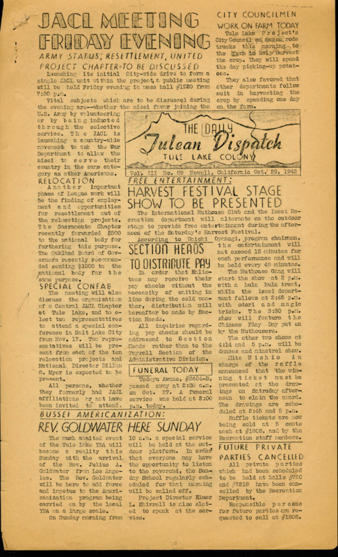 Newsletters from "relocation centers" set up by the US government to forcibly incarcerate Japanese Americans during World War II.