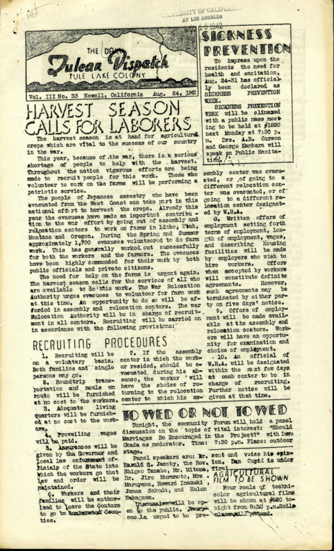 Japanese American Relocation Center Newsletters