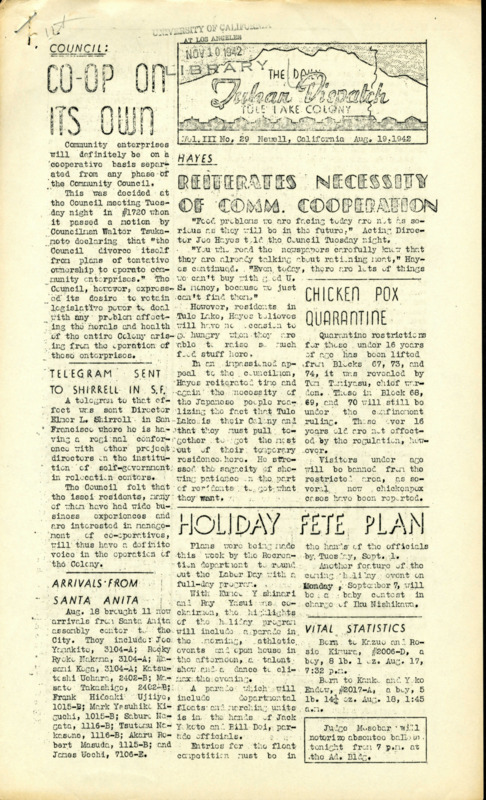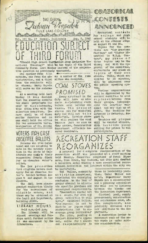 Newsletters from "relocation centers" set up by the US government to forcibly incarcerate Japanese Americans during World War II.