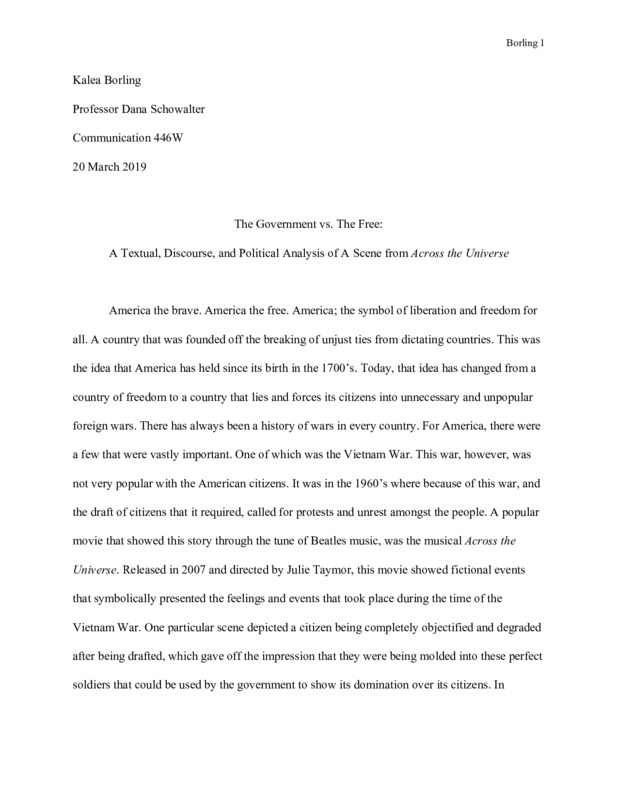 The Government vs. The Free: A Textual, Discourse, and Political Analysis of A Scene from Across the Universe
