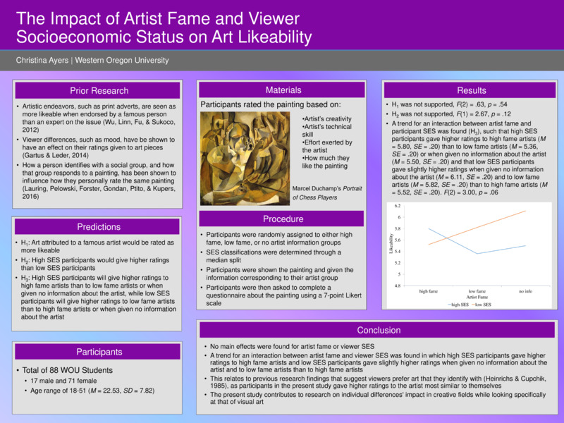 The Impact of Artist Fame and Viewer Socioeconomic Status on Art Likeability