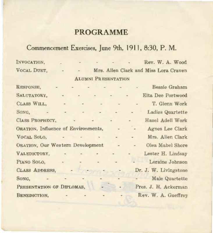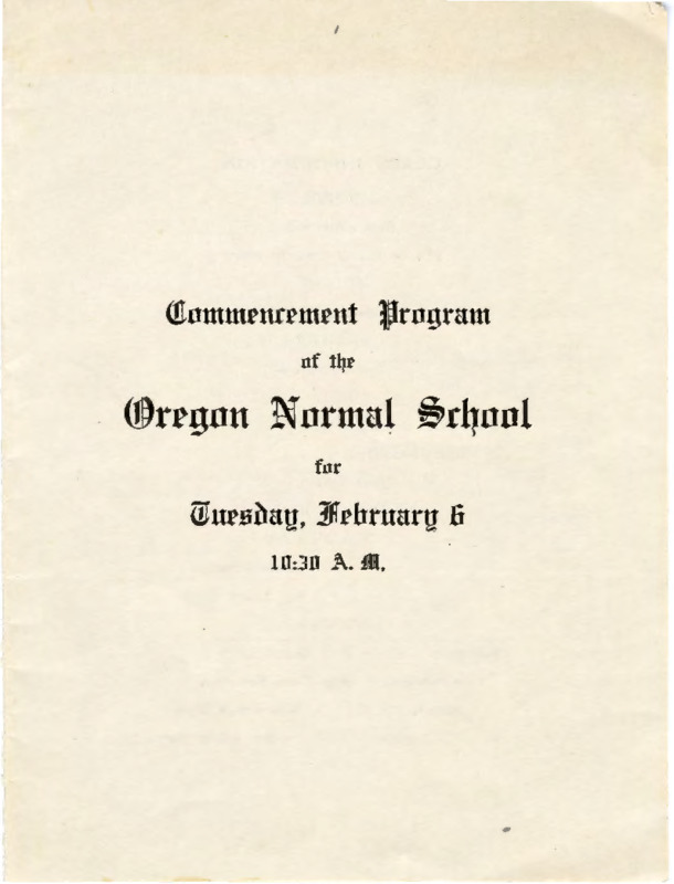 Commencement Program of the Oregon Normal School for Tuesday, February 6 [1912]