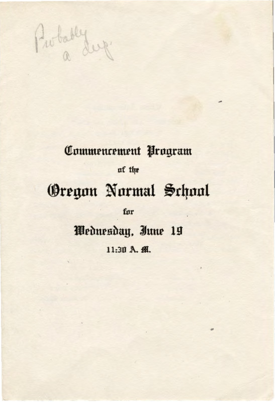 Commencement Program of the Oregon Normal School for Wednesday, June 19 [1912]