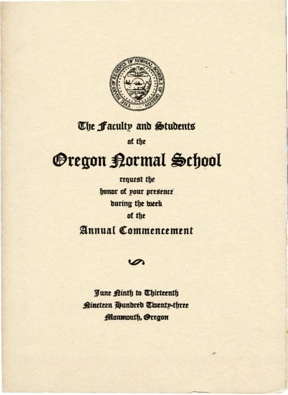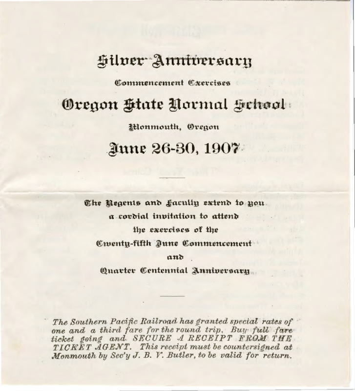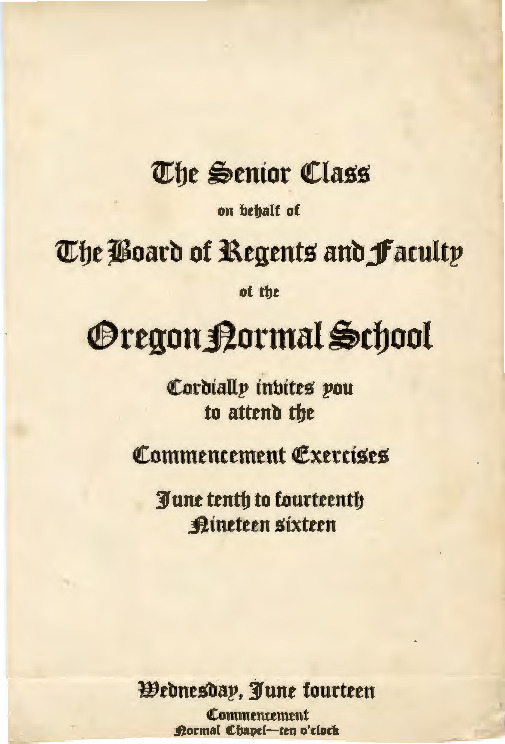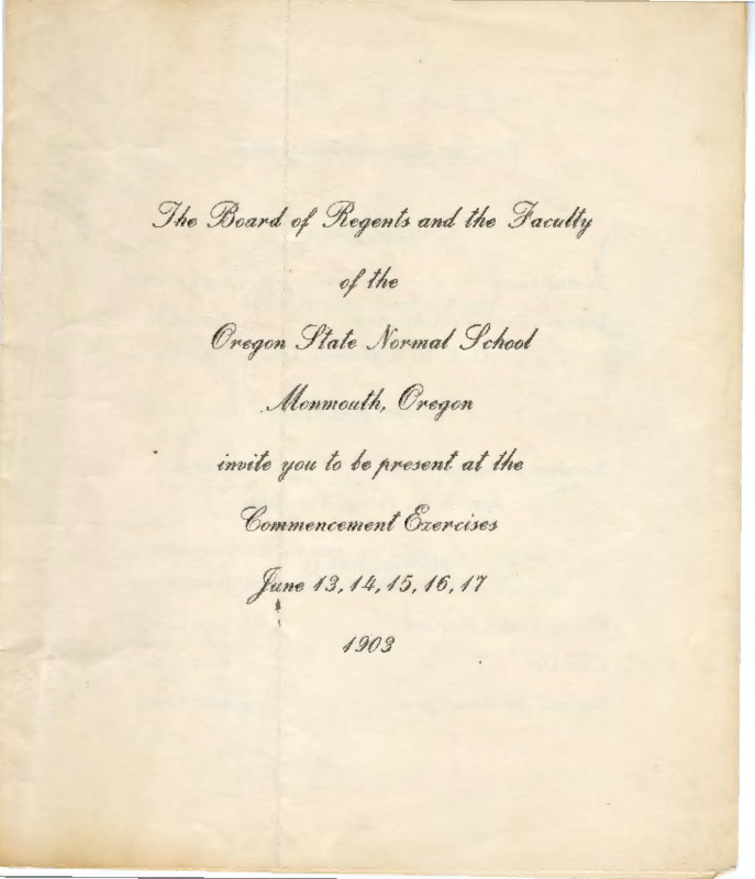 Commencement Invitation from Faculty for Oregon State Normal School 1903