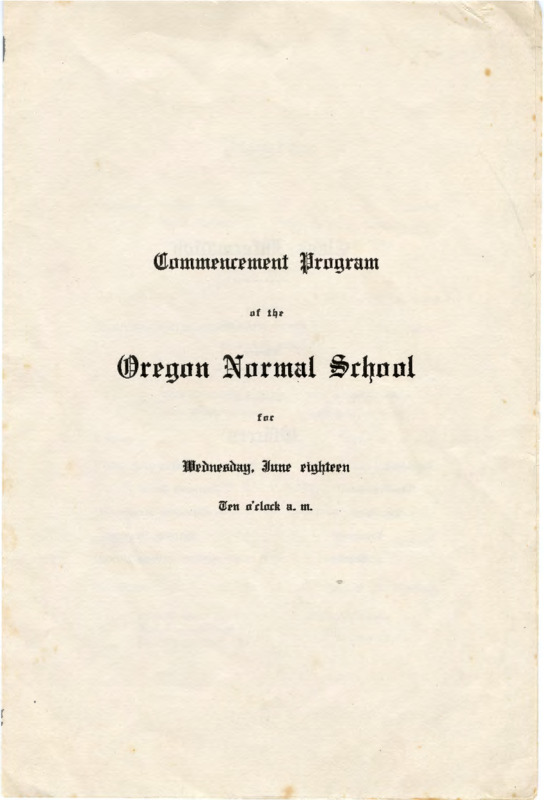 Eighteenth Annual Commencement. [Oregon] State Normal School. Wednesday, June 20th, 1900.