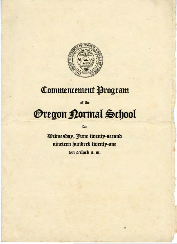 Commencement Program of the Oregon Normal School for Wednesday, June sixteen nineteen hundred twenty