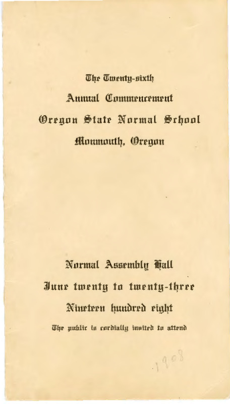 The twenty-sixth annual commencement Oregon State Normal School [1908]