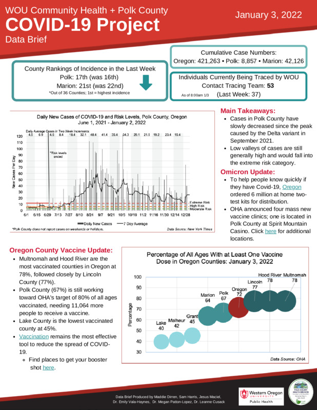 COVID-19 Project Data Brief (WOU Community Health + Polk County), January 3, 2022