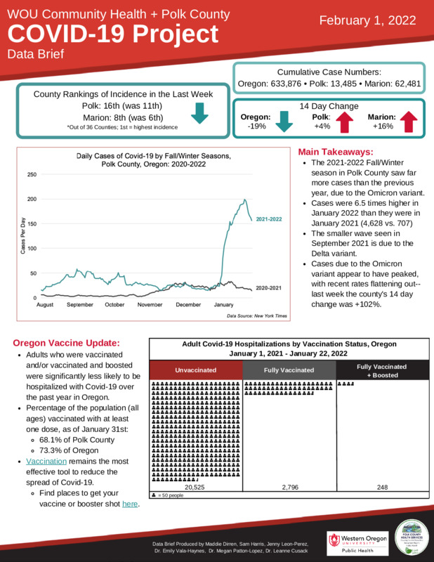 COVID-19 Project Data Brief (WOU Community Health + Polk County), February 1, 2022