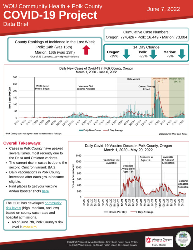 COVID-19 Project Data Brief (WOU Community Health + Polk County), [June 7, 2022]