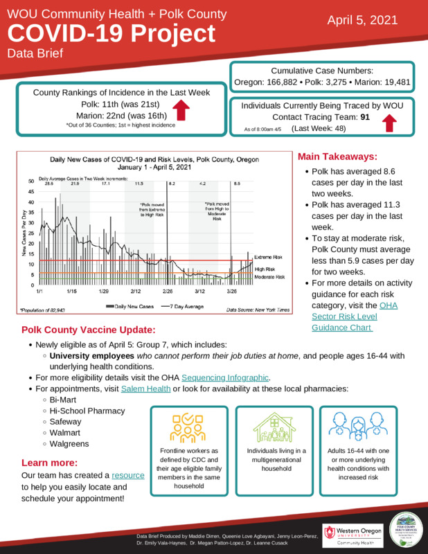 COVID-19 Project Data Brief (WOU Community Health + Polk County), April 5, 2021