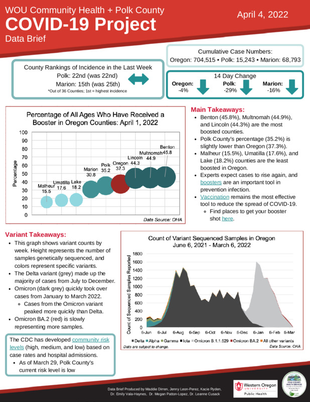COVID-19 Project Data Brief (WOU Community Health + Polk County), April 4, 2022
