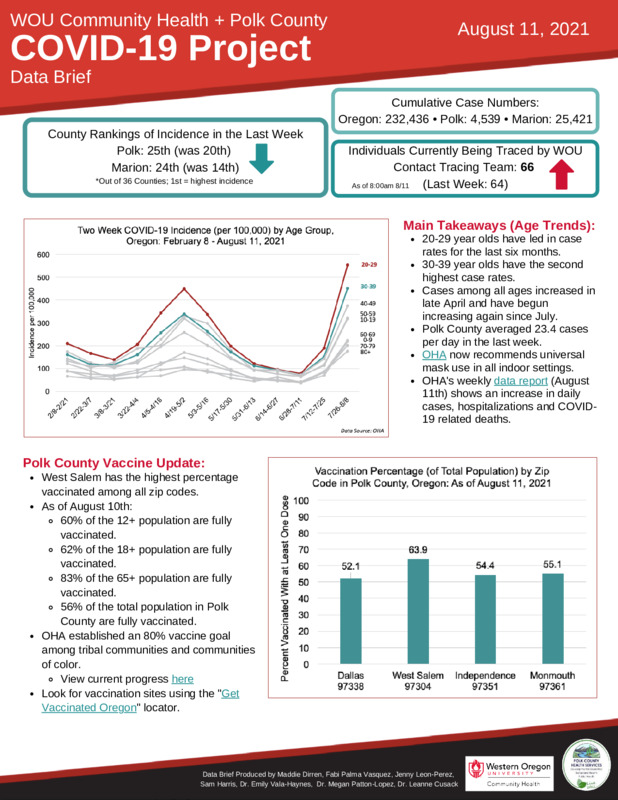 COVID-19 Project Data Brief (WOU Community Health + Polk County), August 11, 2021