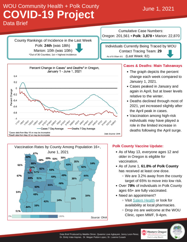 COVID-19 Project Data Brief (WOU Community Health + Polk County), June 1, 2021