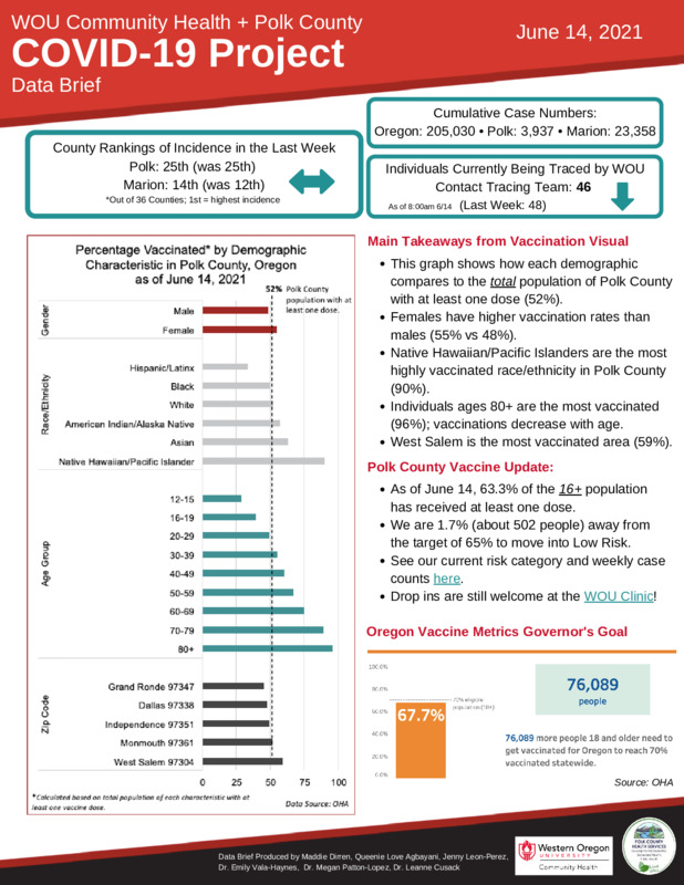 COVID-19 Project Data Brief (WOU Community Health + Polk County), June 14, 2021