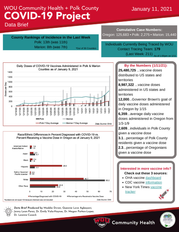 COVID-19 Project Data Brief (WOU Community Health + Polk County), January 11, 2021