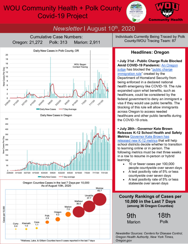 COVID-19 Project Data Brief (WOU Community Health + Polk County), August 10, 2020