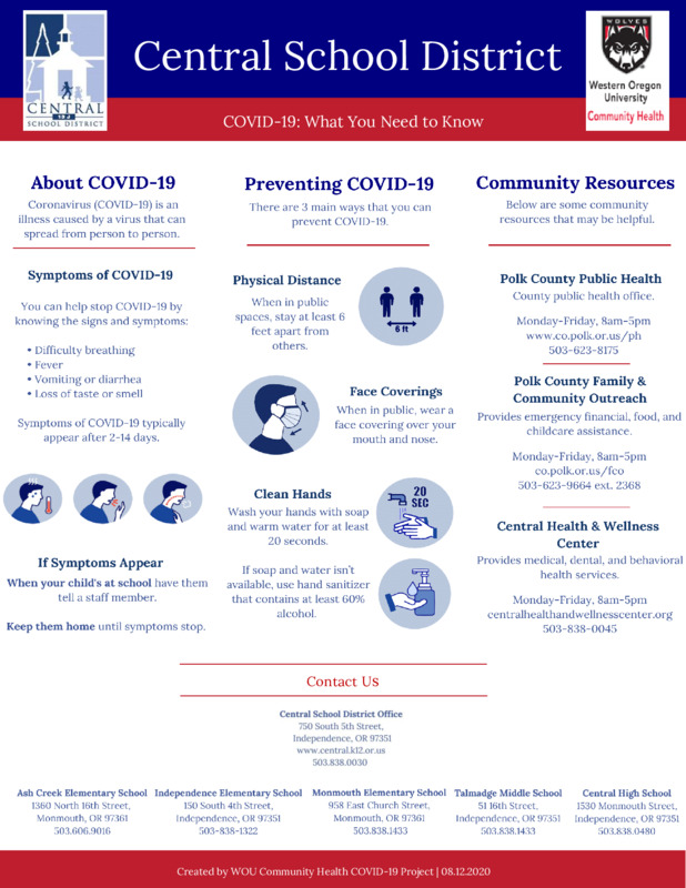 Central School District COVID-19 (WOU Community Health + Polk County) [August 12, 2020]