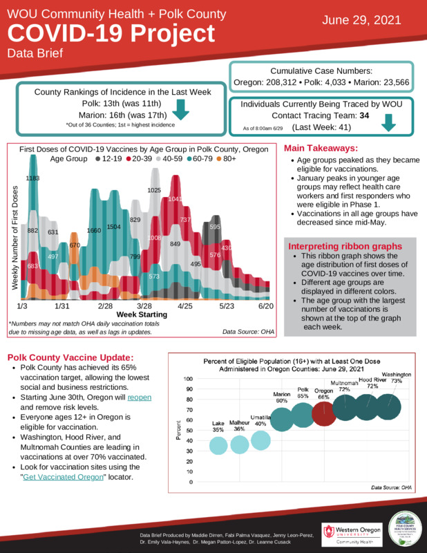 COVID-19 Project Data Brief (WOU Community Health + Polk County), June 29, 2021
