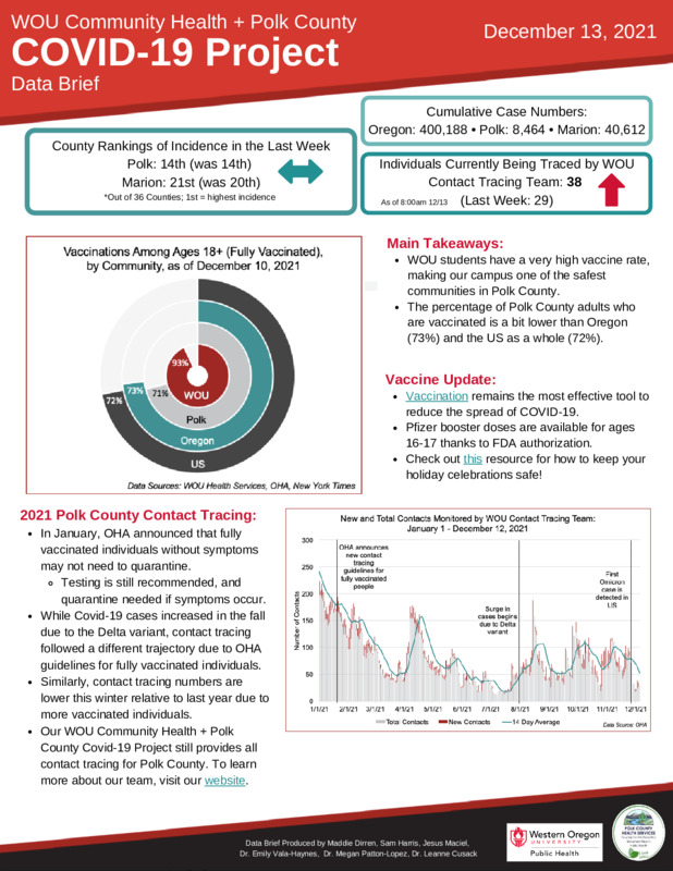 COVID-19 Project Data Brief (WOU Community Health + Polk County), December 13, 2021