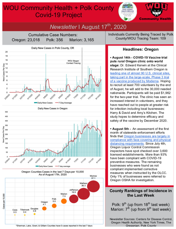 COVID-19 Project Data Brief (WOU Community Health + Polk County), August 17, 2020