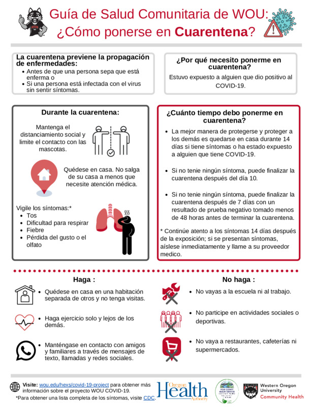 Guía de Salud Comunitaria de WOU: ¿Cómo ponerse en Cuarentena?