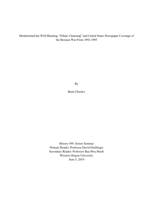 Misinformed but Well Meaning: "Ethnic Cleansing" and United States Newspaper Coverage of the Bosnian War From 1992-1995