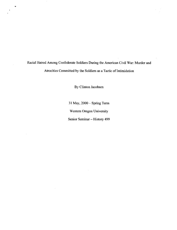 Racial Hatred Among Confederate Soldiers During the American Civil War: Murder and Atrocities Committed by the Soldiers as a Tactic of Intimidation