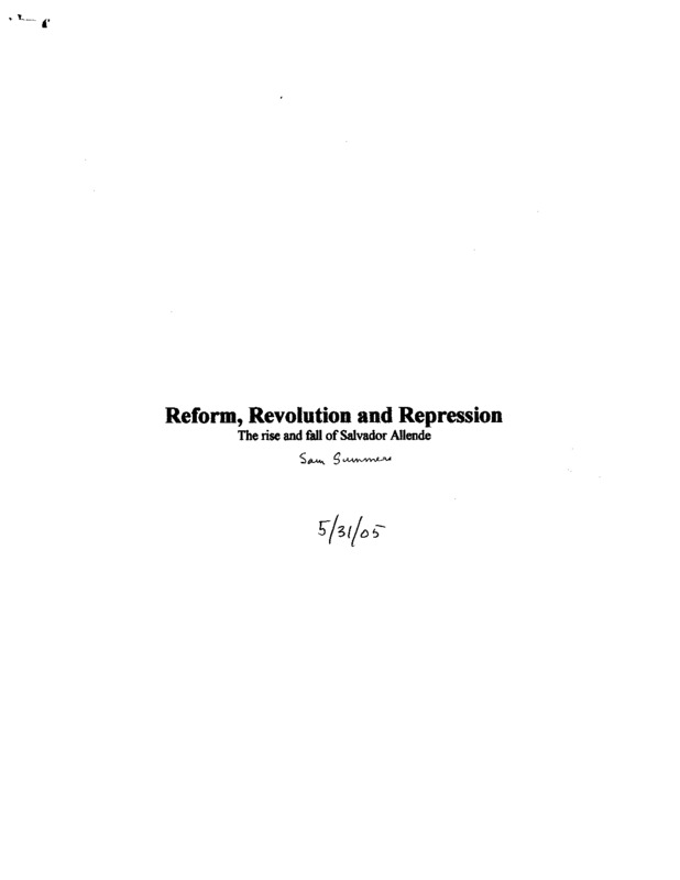 Reform, Revolution and Repression: The Rise and Fall of Salvador Allende