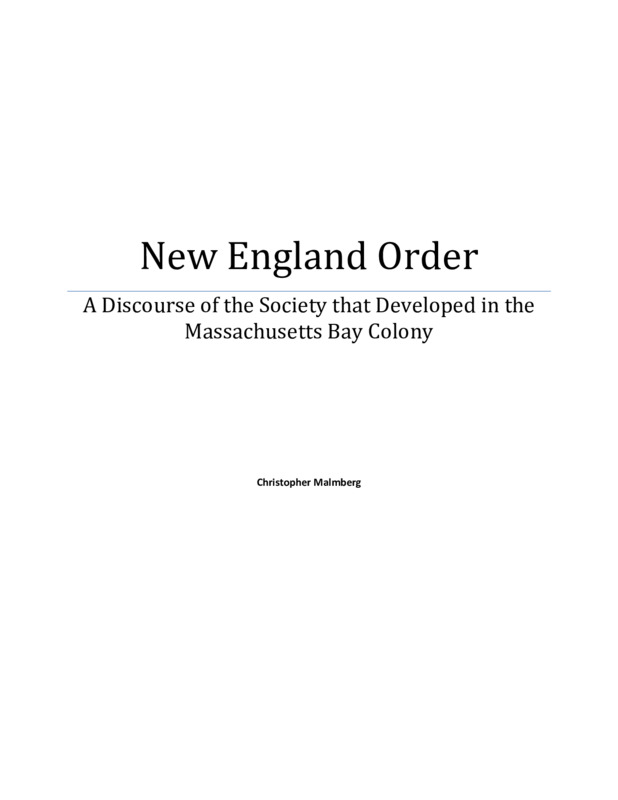 New England Order A Discourse of the Society that Developed in the Massachusetts Bay Colony