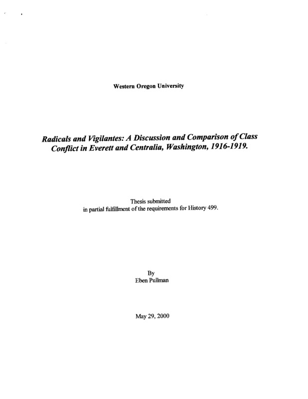 Radicals and Vigilantes: A Discussion and Comparison of Class Conflict in Everett and Centralia, Washington, 1916-1919.
