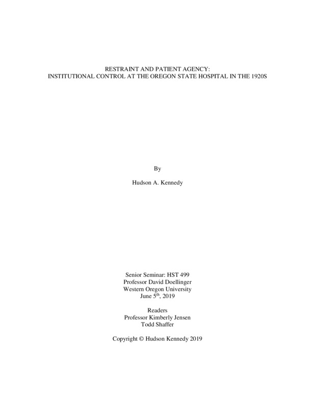 Restraint and Patient Agency: Institutional Control at the Oregon State Hospital in the 1920s