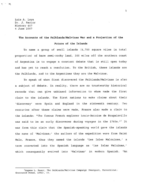 The Accounts of the Falklands/Malvinas War and a Projection of the Future of the Islands