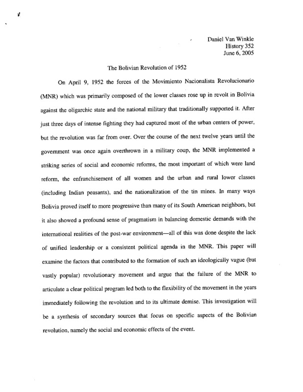 The Bolivian Revolution of 1952