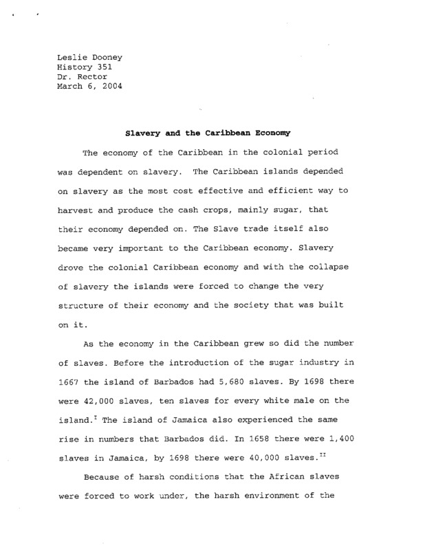 Slavery and the Caribbean Economy