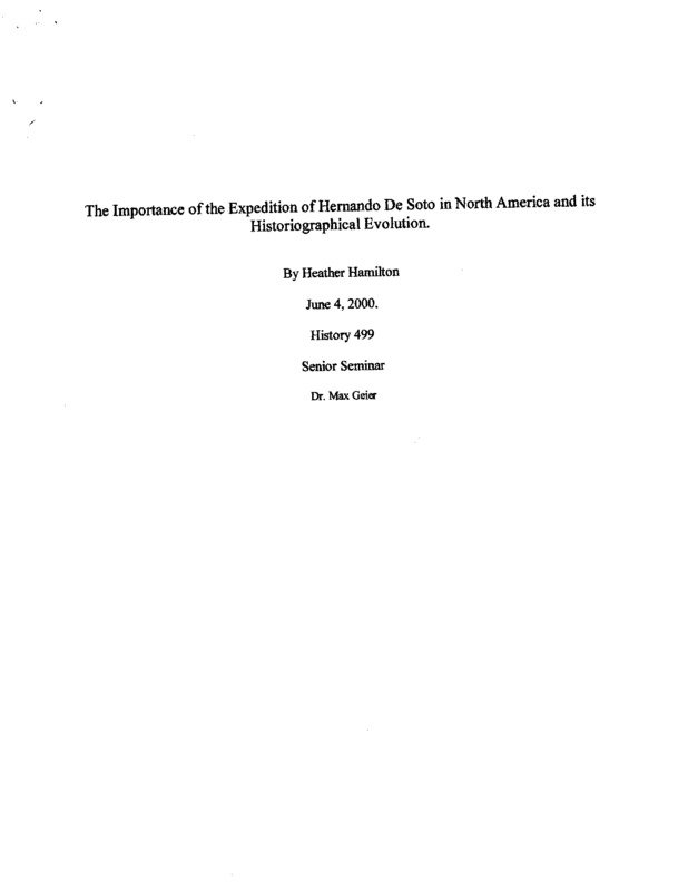 The Importance of the Expedition of Hernando De Soto in North America and its Historiographical Evolution.