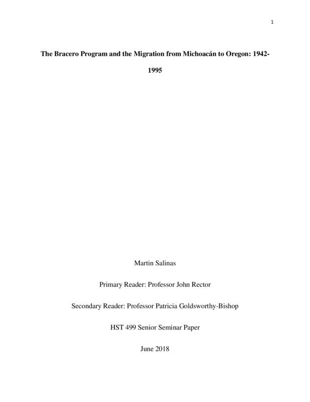 The Bracero Program and the Migration from Michoacán to Oregon: 1942-1995