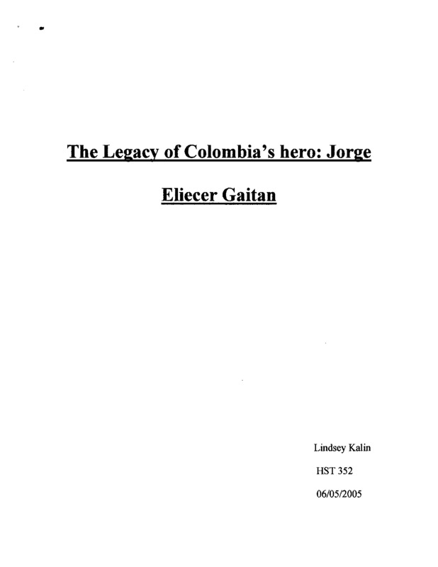 The Legacy of Colombia's Hero: Jorge Eliecer Gaitan