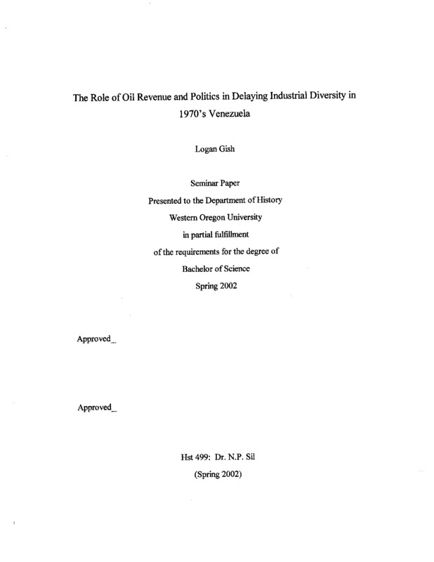 The Role of Oil Revenue and Politics in Delaying Industrial Diversity in 1970's Venezuela