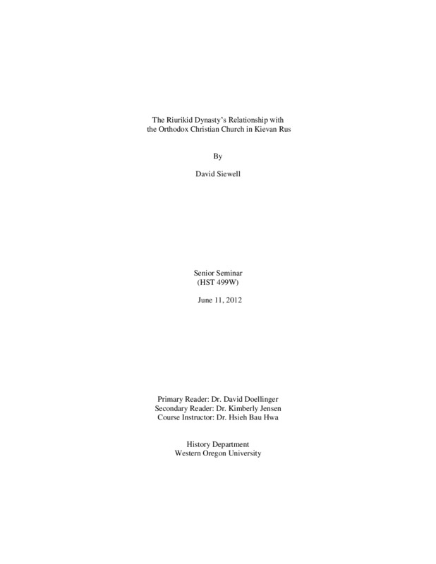 The Riurkid Dynasty's Relationship with the Orthodox Christian Church in Kievan Rus