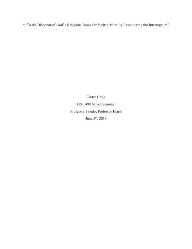 'To The Dishonor of God': Religious Roots for Puritan Morality Laws During the Interregnum