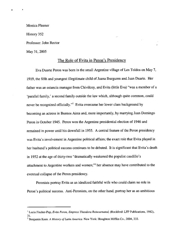 The Role of Evita in Peron's Presidency