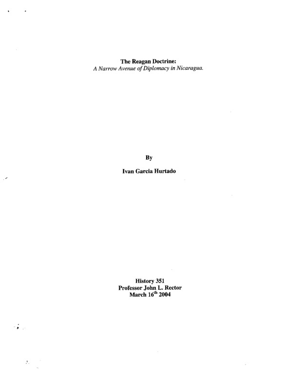 The Reagan Doctrine: A Narrow Avenue of Diplomacy in Nicaragua.