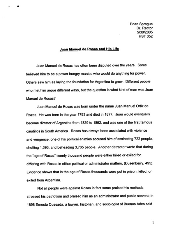 Juan Manuel de Rosas and His Life
