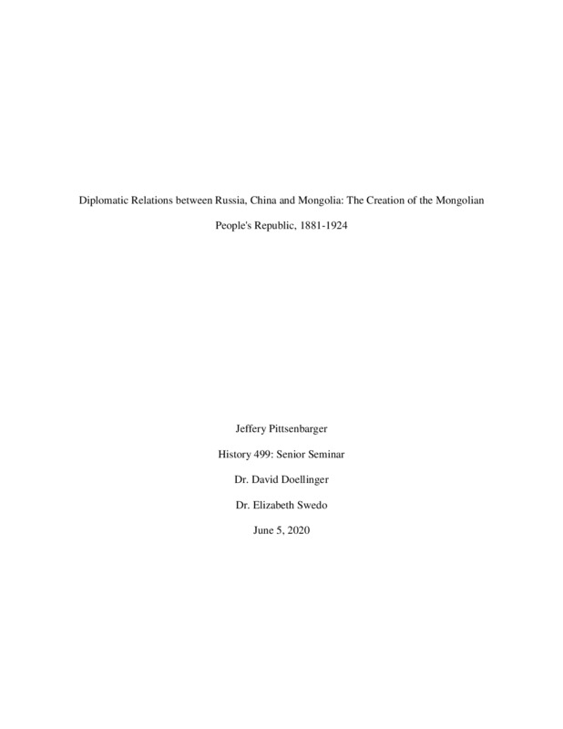 Diplomatic Relations between Russia, China and Mongolia: The Creation of the Mongolian People's Republic, 1881-1924