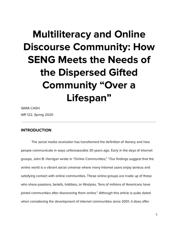 Multiliteracy and Online Discourse Community: How SENG Meets the Needs of the Dispersed Gifted Community Over a Lifespan