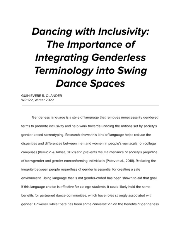Dancing with Inclusivity: The Importance of Integrating Genderless Terminology into Swing Dance Spaces