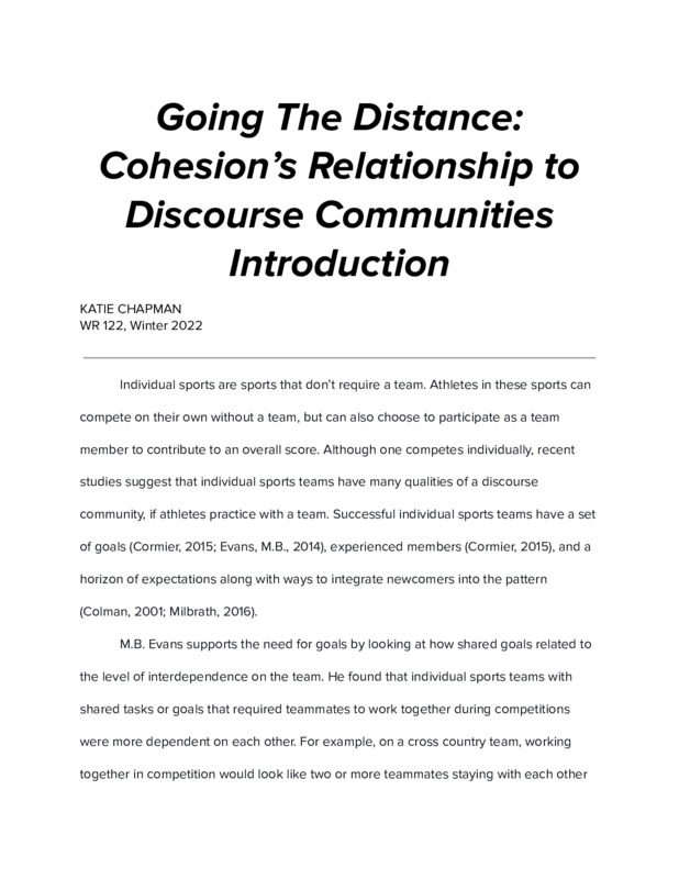 Going The Distance: Cohesion’s Relationship to Discourse Communities