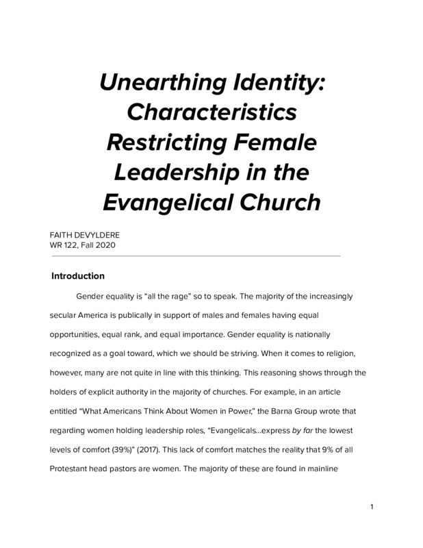 Unearthing Identity: Characteristics Restricting Female Leadership in the Evangelical Church