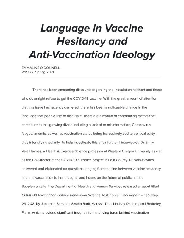 Language in Vaccine Hesitancy and Anti-Vaccination Ideology